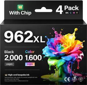 962XL Ink Cartridges Combo 4-Pack High Yield Replacement for HP 962 962XL Ink Compatible with OfficeJet 9012 Pro 9010 9014 9015 9016 9018 9019 9020 9022 9025 9028 e Printers Black Cyan Magenta Yellow