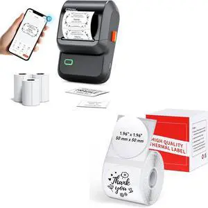 Phomemo M220 Label Maker & 1 Roll Transparent Thermal Labels, 1.96" x 1.96"(50x50mm)