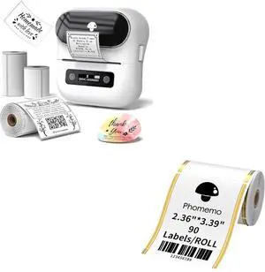 Phomemo M220 Label Maker & 1 Roll Gold Linear Border Label, 2.36"x3.39"(60x86mm)