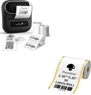 Phomemo M220 Label Maker & 4 Roll Label, 3.14 Inch Bluetooth Thermal Label Printer for Barcode, Address, Labeling, Mailing, File Folder Label, Easy to Use, Support Smartphone, Tablet&PC