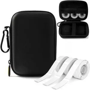 Phomemo D30 Label Maker Machine with case and 4 Rolls Label Tape, Portable Bluetooth Label Printer, Small Smart Phone Handheld Sticker Mini Labeler Multiple Templates Font Icon Easy to Use