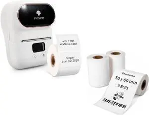 Phomemo M110 Label Maker with 3 Rolls 1.97"x3.15"(50x80mm) Thermal Labels, Bluetooth Thermal Label Maker Printer Apply to Labeling, Office, Cable, Retail, Barcode, Compatible with Android & iOS