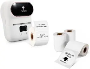 Phomemo M110 Label Maker with 3 Rolls 1.96" x 1.96"50x50 mm Thermal Labels, Bluetooth Thermal Label Maker Printer Apply to Labeling, Office, Cable, Retail, Barcode, Compatible with Android & iOS