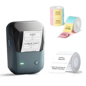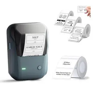 MUNBYN Bluetooth Thermal Label Printer 941B+2.25"x1.25" Green Thermal Sticker Labels+2 in 1 External Rolls Label Holder