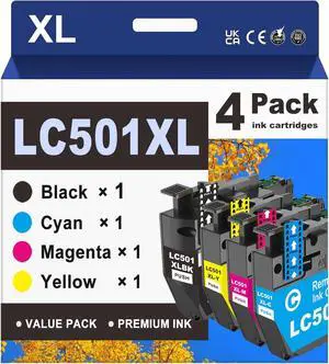 GoToners LC501XL Compatible Ink Cartridges Replacement for Brother LC501 XL LC501XL Combo Pack Work with MFC-J1360DW MFC-J1410DW MFC-J1260DW Printer (Black Cyan Magenta Yellow, 4 Pack)
