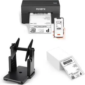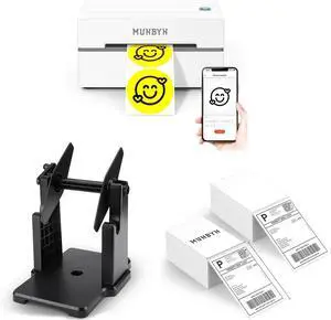 MUNBYN 130B Bluetooth Thermal Label Printer+3x2 Inch White Thermal Labels+Label Holder for Rolls and Fanfold Labels