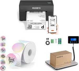 MUNBYN MC240 Bluetooth Thermal Label Printer+2 Inch Thermal Labels Round+Shipping Scale, Accurate 66lb/0.1oz Postal Scale