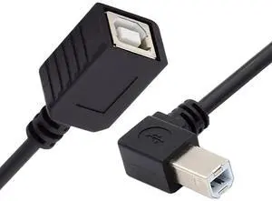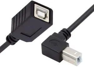 Vszerda USB 2.0 B Type Male to Female Extension Cable Up Angled 90 Degree 20cm for Printer Scanner Disk