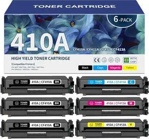 6 Pack 410A Toner Cartridges Replacement for HP 410A CF410A CF411A CF412A CF413A to use with Color Pro MFP M477fdw M477fdn M477fnw Pro M452dn M452nw M452dw Printer Toner (Black Cyan Magenta Yellow)
