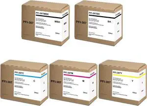 PFI-307 Ink Cartridges Replacement for Canon PFI-307MBK PFI-307BK PFI-307C PFI-307M PFI-307Y for imagePROGRAF iPF830 iPF840 iPF850 CAD Plotter (5-Pack, Matte Black/Black/Cyan/Magenta/Yellow)