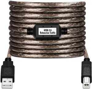 LDKCOK Active USB 2.0 Printer Cable 50ft - A-Male to B-Male High Speed Printer/Scanner/Repeater Cable for HP, Canon, Lexmark, Epson, Dell, Samsung etc (50FT/15M)