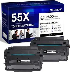 CE255A 55A Black Toner Cartridge P3015 55X CE255X Compatible for HP Laserjet P3015 Toner Cartridge Black for HP P3011 P3015d P3015x P3015dn P3016 Pro 500 MFP M521dn M521dw M521 M525 Printer (2-Pack)