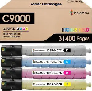 MasaiMara C9000 Compatible Toner Cartridges for Xerox 106R04077 106R04074 106R04076 106R04075 VersaLink C9000 Printer (Black Cyan Magenta Yellow, 4-Pack)