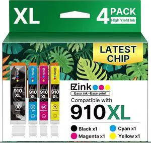 E-Z Ink 910XL Ink Cartridges for HP Printers Replacement for HP 910XL Ink Cartridges Combo Pack 910XL Black and Color Combo Pack Use with OfficeJet 8010 8015 8018 8022 Pro 8025 8020 Printers (4 Pack)