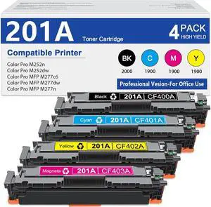 4 Pack 201A BK/C/M/Y Toner Cartridge, Replacement for HP 201A|CF401A CF402A CF403A CF400A Color Pro M252dw Color Pro M252n Color Pro MFP M277n Color Pro MFP M277dw Color Pro MFP M277c6 Printer