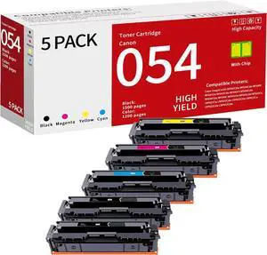 054 CRG054 High Yield Toner Cartridge Replacement for Canon 054 CRG-054 Compatible with Canon ImageCLASS MF642Cdw MF644Cdw LBP622Cdw LBP623Cw Printer ( Black Cyan Yellow Magenta , 5 Pack)