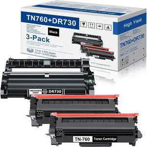 TN760 Toner Cartridge and DR730 Drum Unit Replacement for Brother TN-760 DR730 DR 730 Work with DCP-L2550DW HL-L2350DW HL-L2390DW HL-L2395DW Printer (2 Toners, 1 Drum Unit, 3Pack)