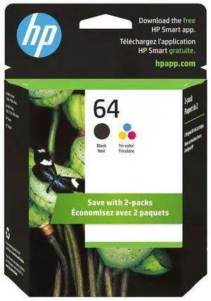HP 64 2-pack Black/Tri-color Original Ink Cartridges, X4D92AN#140
