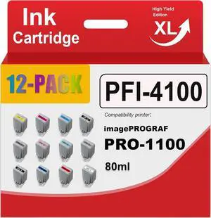 PFI-4100 PFI4100 Ink Cartridge Pigment Ink Tank Bundle Compatible for ImagePROGRAF PRO-1100 Printer Ink (12 Pack, MBK/PBK/C/M/Y/R/GY/B/PGY/PC/PM/CO) 80ML