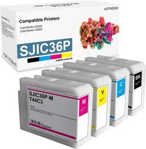 SJIC36P Ink Cartridge (BK/C/M/Y) Replacement for SJIC36P Ink Cartridge Set of COLORWORKS C6500 C6000 Printer (4-Pack)