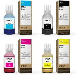 Epson T49M Dye-Sublimation Ink Refill Set, CMYK 4-Pack (Cyan, Magenta, Yellow, Black), 140 mL Bottles, for Epson SureColor F170 & F570