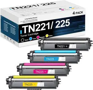 TN-221 Black and TN-225 High Yield Color Toner Cartridge Set - Replacement for Brother TN221 TN225 Toner Cartridges Work with MFC-9130CW HL-3170CDW HL-3140CW MFC-9330CDW(1BK, 1C, 1M, 1Y, 4 Pack)