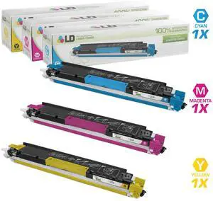 LD © Remanufactured Replacements for Hewlett Packard 130A 3PK Toner Cartridges Includes: 1 CF351A C, 1 CF352A Y, & 1 CF353A M for HP Color LaserJet Pro MFP M176n, & M177fw