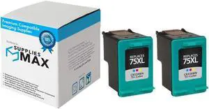 SuppliesMAX Remanufactured Replacement for HP DeskJet D4260/D4360/PhotoSmart C4200/C4300/C4400/C4500/C5200/C5500/D5300 Series Tri-Color High Yield Inkjet (2/PK-520 Page Yield) (NO. 75XL) (CH624BN)