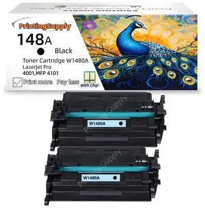 2-Pack Black Toner Cartridge (WITH CHIP) Compatible With HP W1480A For Use With HP LaserJet Pro 4001n, 4001dn, 4001dw, 4101fdn, 4101fdw
