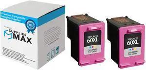 SuppliesMAX Remanufactured Replacement for HP DeskJet D2500/D2600/D5560/F4200/F4400/F4580/ENVY 100/110/120/PhotoSmart C4600/C4700/D110a Tri-Color Inkjet (2/PK-440 Page Yield) (NO. 60XL) (D8J44AN)