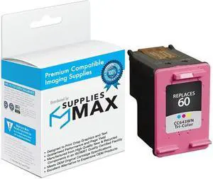 SuppliesMAX Remanufactured Replacement for HP DeskJet D2500/D2600/D5560/F4200/F4400/F4580/ENVY 100/110/120/PhotoSmart C4600/C4700/D110a Tri-Color Inkjet (165 Page Yield) (NO. 60) (CC643WN)