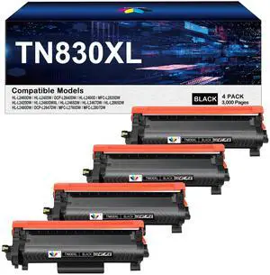 TN830XL Toner Replacement for Brother TN830XL TN830 XL Toner for HL-L2460DW HL-L2405W HL-L2400D HL-L2480DW MFC-L2820DW MFC-L2820DW XL DCP-L2640DW MFC-L2900DW (Black,4 Pack)