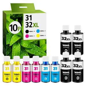 31 32XL Ink Bottle Set for Smart Tank Ink 5101 7602 5000 5103 651 6001 7301 7001 Compatible with HP 31 32XL Ink Bottle Set for Smart Tank 5000 5101 7602 7301 7001 5102 7002 7006 551 Printers, 10 Packs