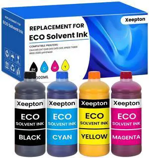 Xeepton Eco Solvent Ink 1000ML for Wide Format Grand Format Printers worh with DX4 DX5 DX7 DX9 DX10 DX11 XP600 TX800 Printhead, Mimaki Roland Mutoh, 4-Pack Solvent Ink Cleaner Kit