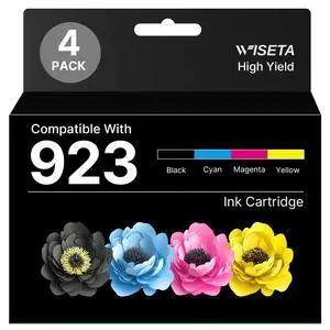 Wiseta 923 Ink Cartridges for HP Printers Compatible for HP 923 Ink Cartridges Combo Pack for HP923 OfficeJet Pro 8135e 8138e 8139e 8130e 8120e 8122e 8124e Printer4 Pack Without Chip