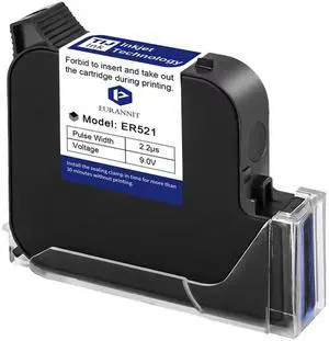Eurannit Original Black Ink Cartridge ER521, 72ml Quick Dry Solvent Ink Replacement for 1inch/25.4mm Handheld Inkjet Printer E15-1 /E16-1 /E11-1 /E50