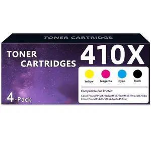 410X 410A Toner Cartridges 4 Pack High Yield Replacement for HP 410X 410A Works with HP Color LaserJet Pro MFP M477fnw M477fdw M477fdn M377dw M452dn M452dw M452nw M477 M452 Series Printer (B/C/Y/M)