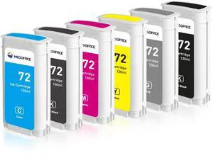 MEGOFFICE Compatible Ink Cartridge Replacement for HP 72 Ink Cartridge C9403A C9370A C9371A C9372A C9373A C9374A for T770 T790 T795 T610 T620 T1100 T1120 T1200 T1300 T2300 (130-ml, 6-Pack)