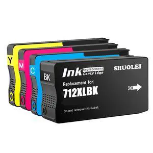 SHUOLEI 712XL High Yield Ink Compatible with HP 712 712XL Ink Cartridges Work with HP DesignJet T650 T630 T250 T230 T210 Printer Series (4-Pack,Black/Cyan/Magenta/Yellow)