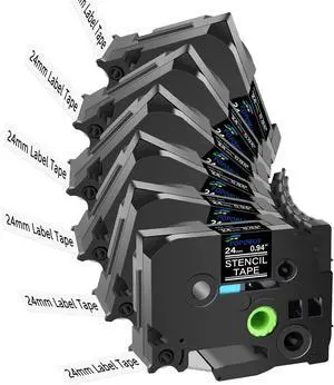 6PK Compatible with Brother Label 24mm STe-151 Mobile Solutions Non-Adhesive Stencil Tape STe151 ST151 Black on Clear 1" (24mm) x 9.8' (3m), for PT-D600 PT-D600VP PT-P700 Label Maker