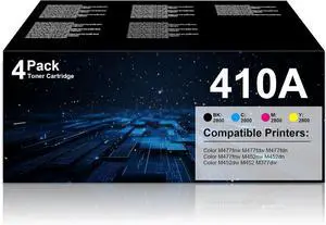 410A Toner Cartridge 4 Pack M452DW Compatible for HP 410A 410X LaserJet Pro MFP M477FDW M477FNW M477FDN M452DN M452DW M452NW MFPM377DW M377DW (Black Cyan Yellow Magenta, with Chip)