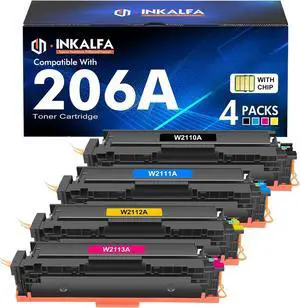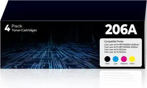 206A Compatible for HP Color Laser pro MFP M283fdn M283fdw M283cdw M282nw M255nw M255dw M183fwl 206A Toner Cartridge Chip 4 Packs W2110A W2111A W2112A W2113A