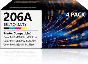 206A Toner Cartridges 4 Pack MFP M283fdw M283cdw Replacement for HP 206A Toner Cartridges Set 206X Color Laser Pro MFP M283fdw M255dw M283cdw M283fdn M255nw M282nw Printer (Black/Cyan/Yellow/Magenta)