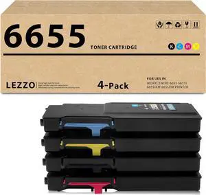 Lezzo 6655 Toner Cartridge 4-Pack 106R02745 106R02746 106R02747 106R02744 Toner Replacement for Xerox 6655 Toner for WorkCentre 6655 6655i Printer (Black Cyan Magenta Yellow)