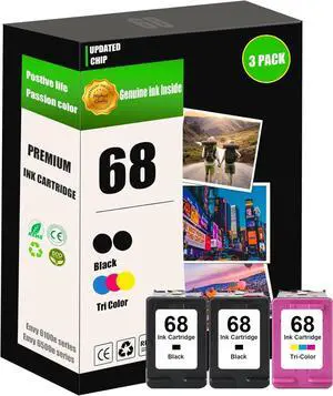 3 Pack 68 Ink Cartridges Compatible for Envy 6155e 6555e 6552e 6152e 6558e Printers (2 Black 1 Tri-Color)