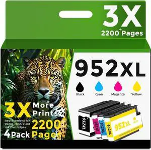 952XL Ink Cartridges Combo Pack Replacement for HP 952 High Yield Work with Officejet Pro 7740 8210 8710 8720 8740 8715 7720 8725 8730 Printer (Black, Cyan, Magenta, Yellow, 4 Pack)