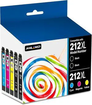 MILEKO 212XL Remanufactured Ink Cartridges Replacement for Epson 212 XL T212 Work for Epson Workforce WF-2850 WF-2830 Expression Home XP-4100 XP-4105 Printer (2 Black, Cyan, Yellow, Magenta, 5-Pack)