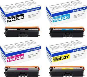 TN433 Compatible TN-433BK TN-433C TN-433Y TN-433M High Yield Toner Cartridge Replacement for Brother TN-433 HL-L8260CDW DCP-L8410CDW MFC-L8610CDW Toner.(1BK+1C+1Y+1M)