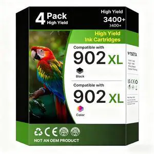 902XL Ink Cartridges for HP Printers Replacement for HP 902XL Ink Cartridges Combo Pack Works OfficeJet 6950,6960 Series 6958 6962 Pro 6978 6968 6975 Printer, 4-Pack, Black Cyan Magenta Yellow T0A39AN
