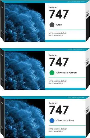 747 Ink Cartridge 300ml Replacement for HP 747 P2V84A P2V85A P2V86A Ink Cartridge for DesignJet Z6 DesignJet Z9+ Large Format Printers, 3 Pack 747 Ink Cartridges (Gray/Chromatic Green/Chromatic Blue)